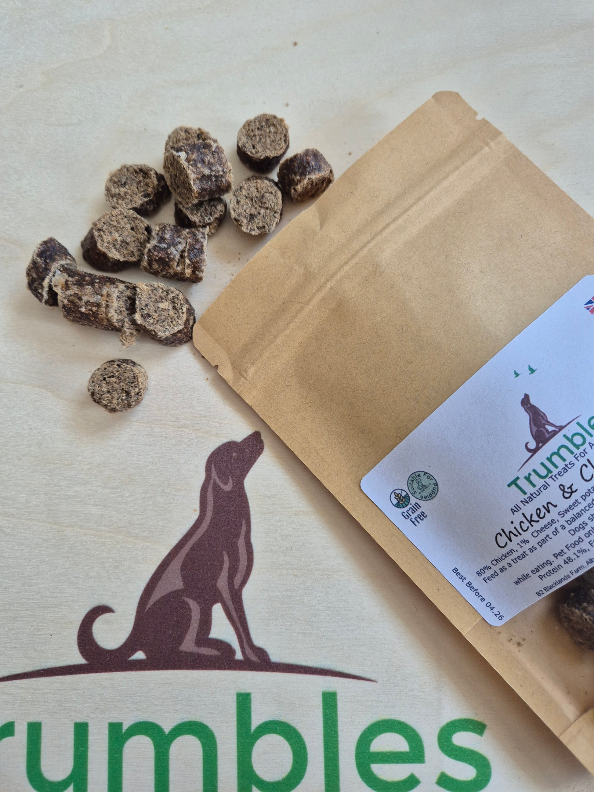 Treat your furry friend to our Chicken & Cheese Slices, a natural snack perfect for dogs and puppies aged 4 weeks and older. These tasty bites are excellent for training and gentle enough for dogs with allergies, sensitive stomachs, or digestion issues. Infused with Sweet Potato, they offer Beta-Carotene that converts to Vitamin A, supporting eye health and immunity. Plus, the fibre content helps keep digestion on track. Made with 100% natural ingredients and completely grain-free, these slices are sure to make tails wag!