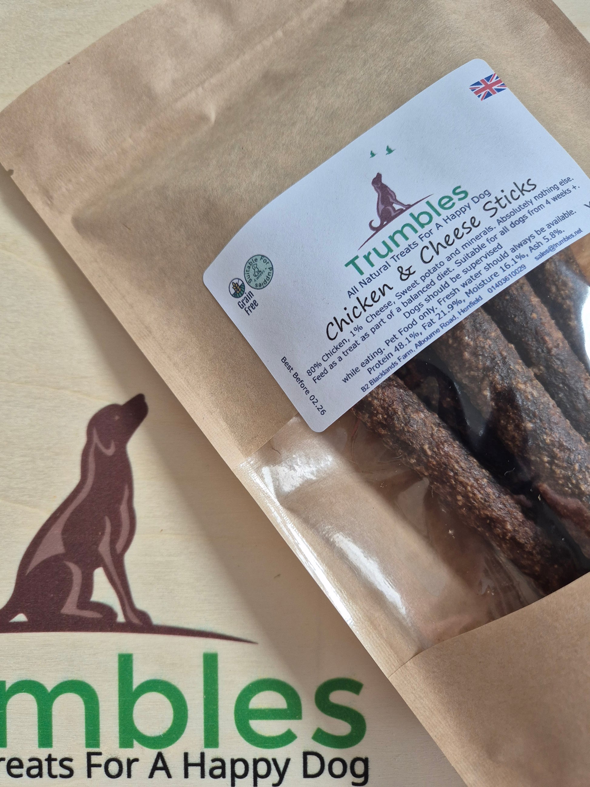 Our Chicken & Cheese Sticks are a great natural treat for all dog and puppies from 4 weeks +. They can easily broken into small pieces for puppies and smaller dogs. Our Chicken & Cheese Sticks are not only delicious but they’re healthy too, a great treat for dogs with allergies, digestive issues or a sensitive stomach. With Sweet Potato which is a great source of Beta-Carotene which the body turns into Vitamin A. Vitamin A helps support eye health and immune function. Sweet Potato is also high in dietary Fibre which helps aid digestion. 100& Natural & Grain Free your dog is sure to love them.